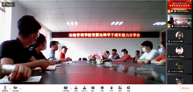为发扬运输管理学院学生会工作优良传统,更好传承“青雁先锋”头雁领航精神,发挥先优学生楷模作用,搭建学生朋辈交流互鉴平台,运输管理学院于5月26日在齐贤楼420室通过“线上+线下”的方式开展了“青雁先锋学子成长接力分享会”活动。此次会议由学生会主席团成员陈诺主持,运输管理学院党总支副书记葛明亮、团总支书记周寸飞、第十五届学生会代表、第十六届学生干部及21级学生会全体成员参加了本次会议。