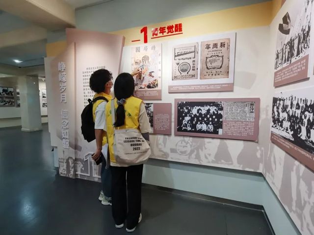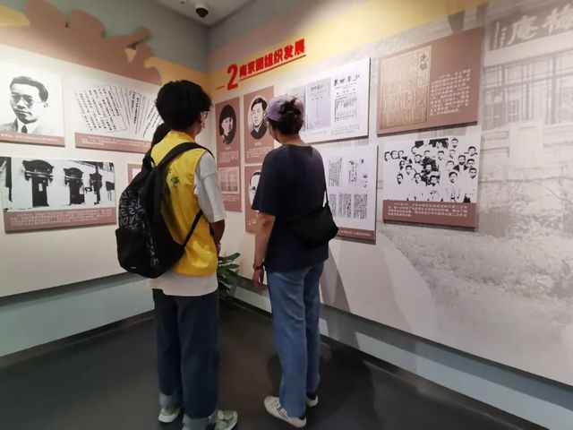 星火逐梦调研团来到一楼的临时展览部分,正值“心向党 正青春——中国共产主义青年团南京史料展”开展。展览以“喜迎二十大 永远跟党走 奋进新征程”为主题,分为“峥嵘岁月 信念如磐”、“建设年代 激情奉献”、“改革开放 勇立潮头”和“青春心向党 建功新时代”四个部分,通过200余张珍贵历史图片,100余件文物史料、档案文献,展现100年来南京地区团员青年跟党奋进、砥砺前行,为实现中华民族伟大复兴的中国梦而奋斗的光辉历程。调研团同学们在浏览过程中深受震撼,张恒瑜同学作为基层团支书更是感慨道,青年团员作为党的后备军,要在关键时刻能发挥作用。团支部更要做好宣传和引导作用,加强社会主义核心价值观教育,提高广大青年团员的政治素养,引导优秀团员积极向党组织靠拢。