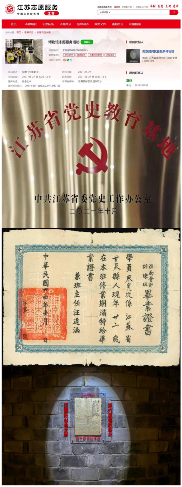 南京民间抗日战争博物馆是江苏省第一座反映中国人民抗日斗争的民间专题博物馆,馆内珍藏了抗战时期日本侵略者的罪证,具有重要的史料价值。博物馆紧紧围绕牢记文物征集是博物馆的核心,以物见史;着力宣传红色主旋律,以心铸史;致敬关爱老兵志愿,以人证史;联合社会力量办展,以情塑史;借力媒体,宣传历史;以志愿服务传播文明,以善固史等”六“史”勤奋工作,赢得社会好评。这也正是星火调研团选择它作为调研地的原因。