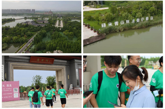 临靠马庄村的潘安湖湿地公园是在煤矿塌陷区的基础上建成的,通过无人机航拍,实践团队清晰地看到公园内的整齐规划和秀丽风光。实践队员在此开展问卷调查,进一步了解潘安湖湿地公园的生态修复和湿地建设成效。
