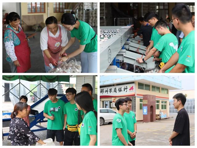 邳州市宿羊山镇是驰名中外的“大蒜之乡”,在指导老师的带领下,实践队员们来到了宿羊山镇当地的恒丰宝大蒜收购市场,这里有众多村民们在市场前排队,等待进行大蒜交易。队员们在工作人员的指导下,一起对收购的大蒜进行检验、分装、打包和搬运。在这里,队员们还了解到,宿羊山镇的大蒜种植采用半机械化的方式,用播种机精准种植,再用无人机进行全方位的农药喷洒,利用科技成果降低人力成本,这也是宿羊山镇大蒜产业发展较好的原因之一。