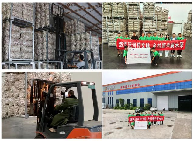 随后实践队员们又来到了徐州恒大食品蒜易通5A智能仓基地,基地共有25个冷库,每个冷库可以储存800吨大蒜,库内常年保持在2℃左右的温度可以将大蒜保存一年之久。实践队员们到达时,还有工作人员穿着厚厚的棉大衣,有序地将采购的大蒜运输到冷库中。