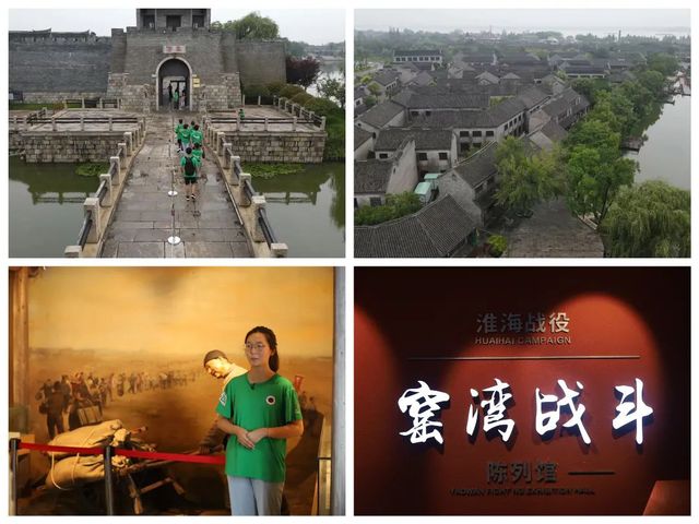 第二站队员们来到了窑湾古镇,这是一座具有一千多年历史的水乡古镇,实践队员们在调研过程中,惊叹于古镇中的古老建筑风格,也感受到了丰厚而古老的历史文化遗存。窑湾自古以来就是漕运要道也是军事重镇,自此也成为了兵家必争之地,解放战争时这里打响了淮海战役第一枪。队员们在“淮海战役第一枪”纪念馆内学习了窑湾战斗的相关历史,队员孙运嘉同学在这里录制了“红色故事”的微视频。