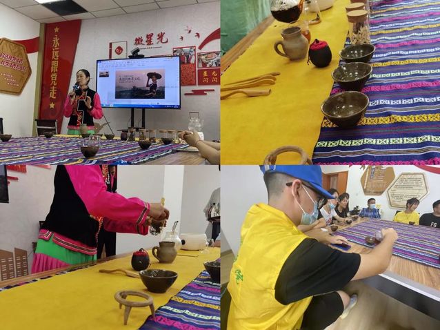 活动现场,哈尼族普洱茶第三代传承人哈尼之老师向大家讲述了云南哈尼族茶文化的相关知识,为团员青年们及参加同学们现场示范并详细介绍了每一件茶艺器皿工具的使用方法,演示了茶道技艺和礼仪,让青年们多角度认识、感受、体验传统茶文化。