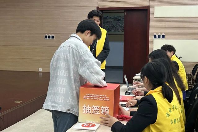 比赛当天,志愿者全部提前到岗,整个会议厅都是穿着黄马甲的志愿者们忙碌的身影。他们认真指导参赛者们签到抽签,细致地帮助参赛者们提交参赛资料,带领参赛者们提前彩排,解答带队老师们的相关疑问,充分展现了自己的专业服务、认真态度和“全心全意为人民服务”的雷锋精神。