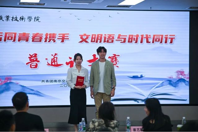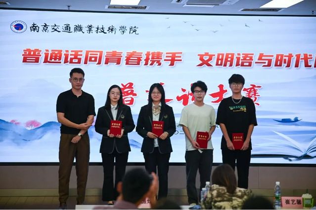 比赛现场,选手们精神饱满,掷地有声,通过朗读字音文章,即兴评价事实等方式体现了深厚的文字功底。广播台的同学带来节目《南京,南京》,用抑扬顿挫的朗诵和慷慨激昂的情绪致岁月铅华,敬红色传承。高仲轩老师就本次大赛作精彩点评,对优秀选手的表现表示了肯定,并给予期望。经过层层比拼,运输管理学院郑佳欣获得一等奖,电子信息工程学院渠宇、路桥与港航工程学院缪宇劼获得二等奖,汽车工程学院吕猛、建筑工程学院石欣、轨道交通学院周子鹏、人文艺术系周婉琳获得三等奖。