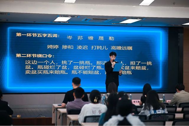 为弘扬中华优秀文化传统,彰显我校学子蓬勃向上的精神风貌。6月7日下午,第二十二届校园文化艺术节暨第十七届读书节“普通话同青春携手,文明语与时代同行”普通话大赛在我校图书馆B203顺利开展,南京艺术学院电影电视学院优秀青年教师高仲轩,中国交通广播长三角频率汽车节目主持人王振焜和学院团委老师共同担任此次大赛评委。
