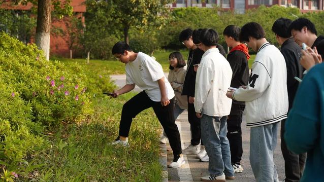 活动现场,青雁心理工作室的姬慧老师带领同学们沿着校园各处花境游览,引导同学们仔细观察校园花境上那些看起来特别平凡的花花草草、灌木乔木,介绍了各个物种独特的生命特征及其独特的生命魅力。