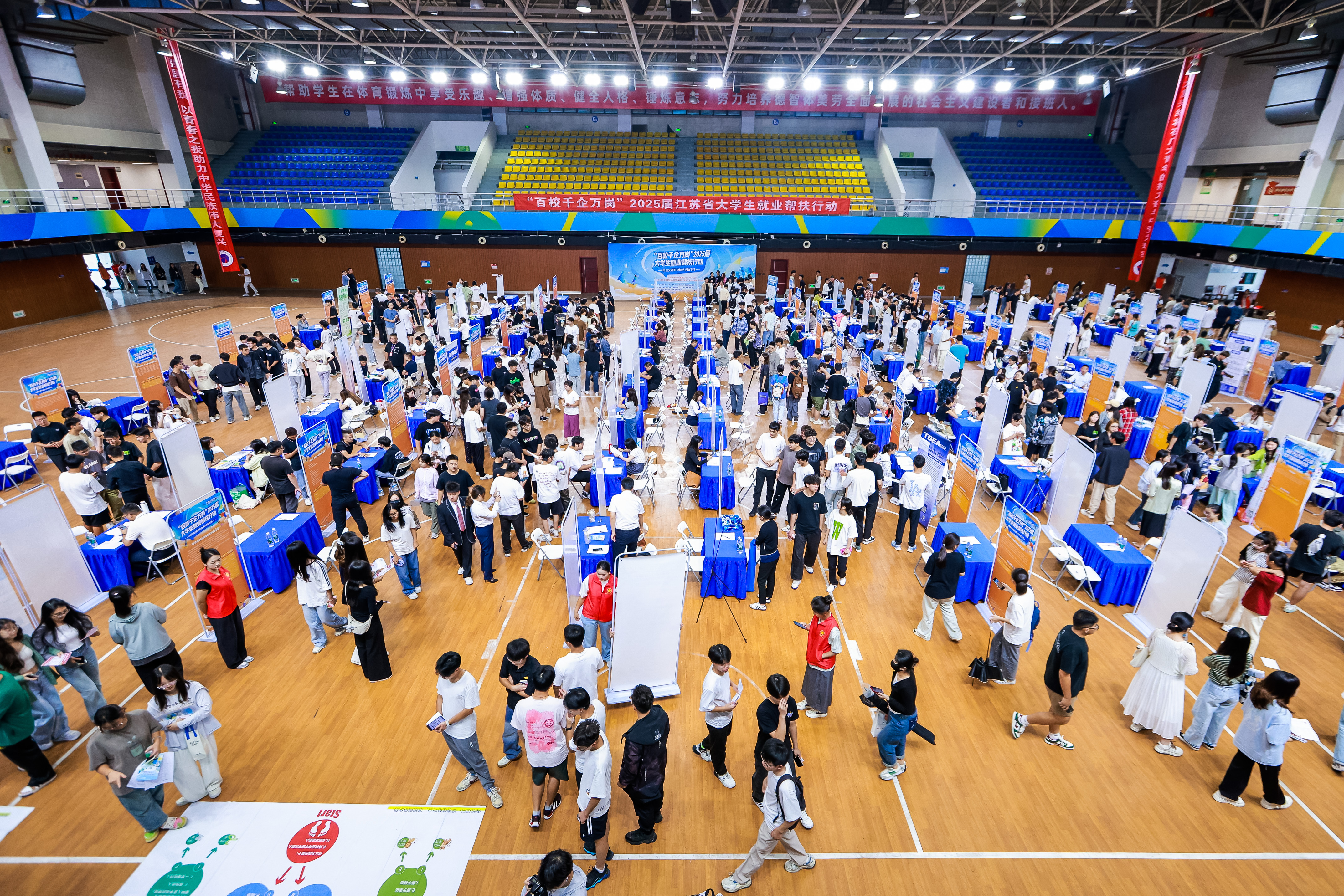 9月25日,由团省委、省教育厅、省工信厅、省人社厅、省国资委、省广电总台主办,学院和团南京市委具体承办的 “百校千企万岗”2025届江苏省大学生就业帮扶行动“送岗直通车”线下招聘会在学院行健馆顺利举办。