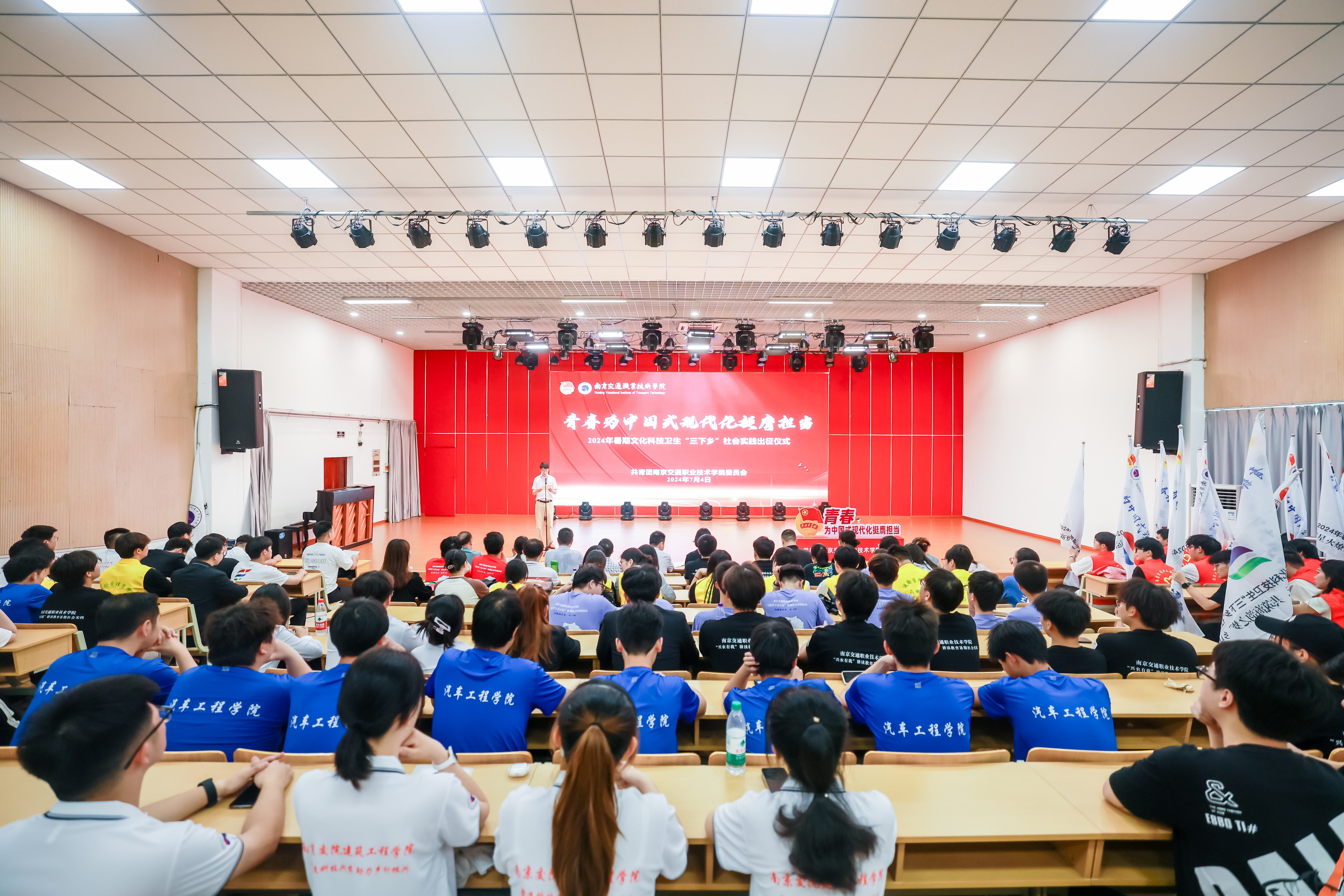 为深学笃用习近平新时代中国特色社会主义思想,深入学习领会习近平总书记五四青年节对全国广大青年寄语精神,引导和帮助广大青年学生上好与现实相结合的“大思政课”,在社会课堂中“受教育、长才干、作贡献”,坚定信念听党话、跟党走。团委于7月4日下午在大学生活动中心举行“青春为中国式现代化挺膺担当”2024年大学生暑期“三下乡”社会实践活动出征仪式。学院党委委员、副院长刘雪芬,学生工作处、团委负责同志,各二级院系党总支副书记、团总支书记以及暑期社会实践团队师生共计150余人共同参与。