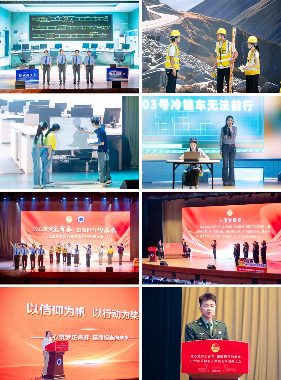 活动现场,思政舞台剧《青春轨迹》以生动的演绎展现了交院青年用工匠精神雕琢时代丰碑、用专业信仰服务社会的奋斗故事。运输管理学院刘宇老师以《以信仰为帆 以行动为桨》为题,号召青年学子将职业理想融入国家发展;电子信息工程学院朱明辉同学通过强军兴军的鲜活事例,诠释新时代青年的使命担当。随后,新团员面向团旗庄严宣誓,为共青团注入新鲜血液。