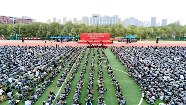 秋光正好,军歌激昂。9月28日下午,学院在操场上成功举办2025级新生军训大合唱比赛。在纪念中国人民抗日战争暨世界反法西斯战争胜利80周年之际,全校师生以党史为脉络,以歌声为媒介,共同沉浸于一堂别开生面的“歌声里的思政课”。承训部队领导,江宁区人武部政治委员王召尧,学院院长王道峰,党委副书记文爱民,纪委书记张徐刚,副院长刘雪芬、姜军,正处级干部白炳东以及2025级新生军训工作领导小组全体成员出席活动,与2025级全体新生共同见证这一融红色教育与青春风采于一体的视听盛典。