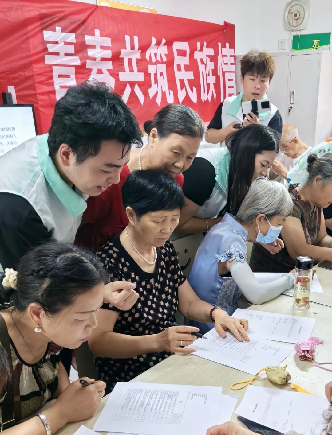 镇江社区的“香缀千秋桥・情暖石榴红”活动现场,队员们用课件讲解各族香囊文化:回族几何纹样寄寓对生活的热爱,汉族艾草香囊承载平安祈愿,让老人们深入了解香囊作为文化载体的内涵。各族老人围坐协作制作香囊,欢声笑语中,各族文化故事自然交流。