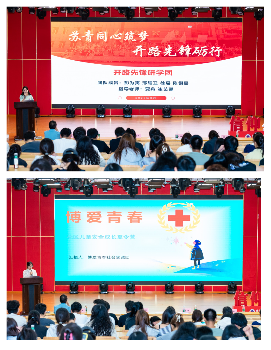 为深化实践成效、促进交流互鉴,9月24日下午,校团委在大学生活动中心举行2025年“信仰公开课”暨大学生暑期“三下乡”社会实践评审会。学院相关职能部门领导、各院分团委书记、指导教师及实践团队成员共300余人参加活动。
