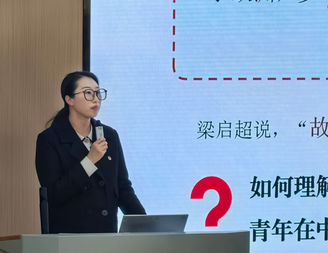 在思政教育环节,艺术设计学院分团委书记张笑老师带来了精彩的思政课展示。张老师在第五届江苏省团干部思政技能大比武中荣获佳绩,她结合理论高度与青年实际,深入浅出地阐述了新时代思政工作的要点与方法,为团干部开展思想政治引领提供了重要参考。随后,轨道交通学院机电2302团支部于文杰同学以青年视角传递思想力量,充分展现了新时代团员青年的理论素养与表达能力。
