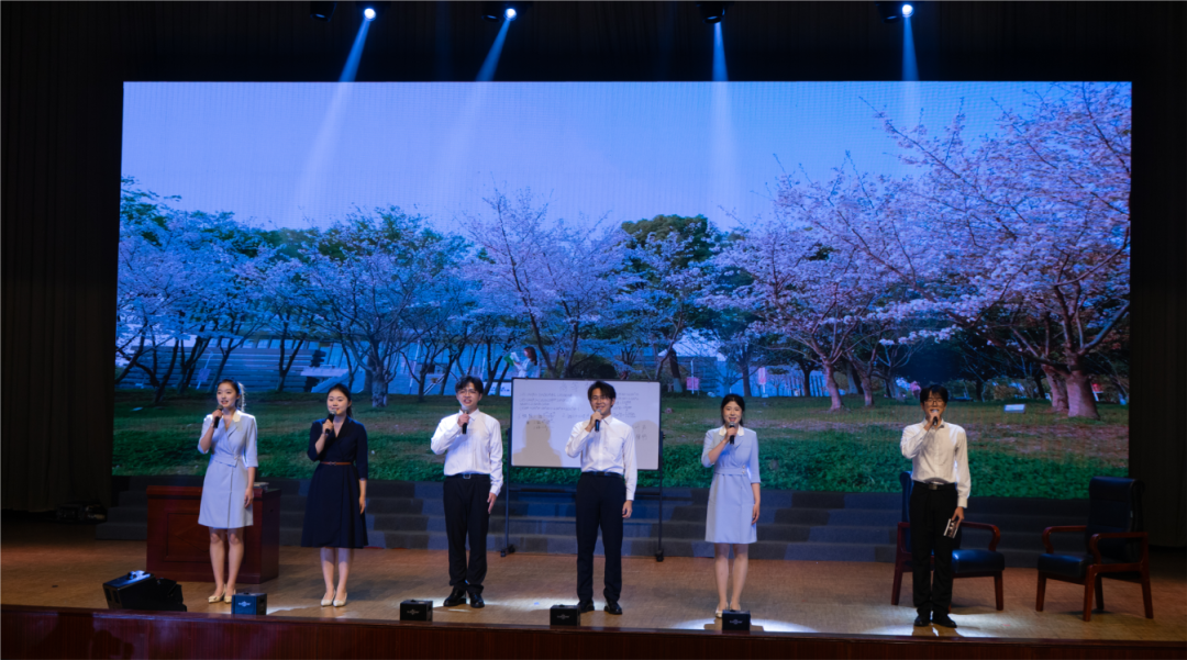 随后,校青年之声广播台献上配乐朗诵《岁月的回响》。同学们用深情的声音,将图书馆的静谧、运动场的激情、考前的奋战、宿舍的夜话等校园生活片段娓娓道来,唤起了校友们对青春岁月的集体记忆。