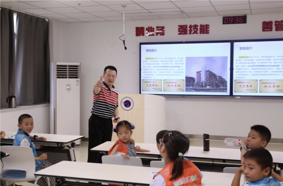 活动伊始,运输管理学院组织员马晓雷以生动案例与互动问答,为孩子们简要介绍了学院现代物流管理、城市轨道交通运营和空中乘务等特色专业的发展前景与社会价值,点燃了现场学生的求知热情。