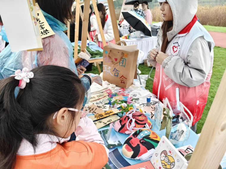活动当日,南京交院社团工作部携淘淘乐陶艺社、立源书画社、知行国学社等社团的精选作品惊艳亮相。这些作品不仅是学生们课堂所学与课外实践的结晶,更成为了连接学院与市民、传递爱心与温暖的桥梁。一件件精巧的陶艺、一幅幅笔墨丹青的书法书签,蕴含着国学韵味的创意脸谱,在活动现场构筑了一道独具人文气息的风景线。