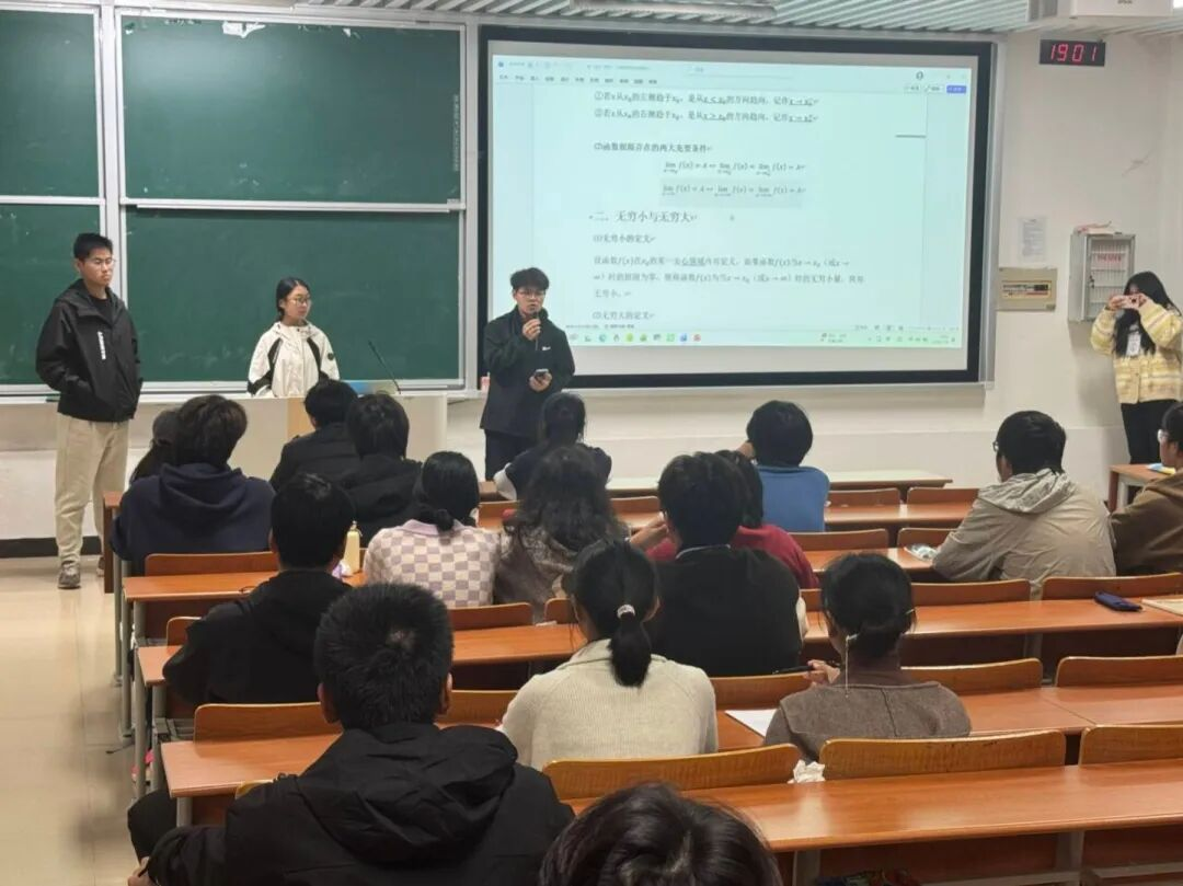为帮助同学们更好地应对大学数学课程,社团于2025年11月5日组织了第一次高等数学辅导课。本次课程聚焦“极限”章节,由高年级优秀学长和学姐进行系统串讲与难点答疑。课程内容充实,讲解清晰,为同学们梳理了知识体系,解决了学习中的困惑,获得了参与同学的一致好评。对于没有开设高数课的同学,我们社长与部长联手,把极限是什么?如何逼近具体值?更详细的讲解。再配合题目讲解“0比0”“∞比∞”等常见极限题目,让同学们更加娴熟做题。