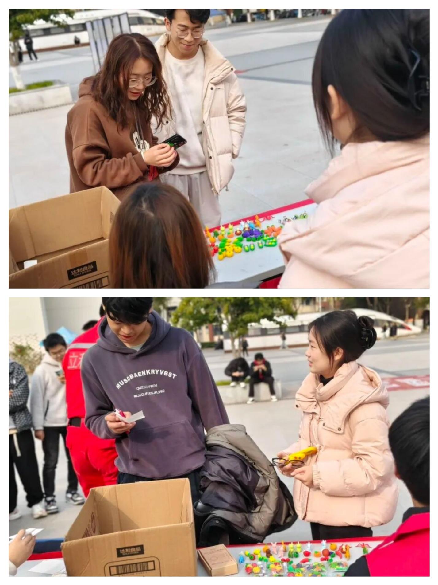 在思源堂广场的摆摊活动精彩纷呈,四大板块吸引了师生踊跃参与。在“志愿知多少”的知识问答环节,让参与者在竞答中深化志愿认知。