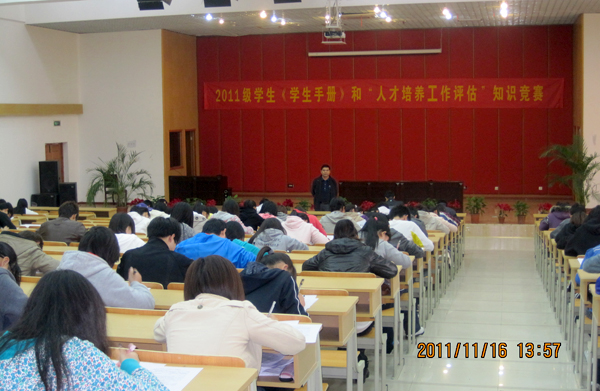 11月16日,学院在大学生活动中心226室举行学生学习《学生手册》和“人才培养工作评估”知识竞赛。各系随机抽取的146名2011级学生参加了竞赛。