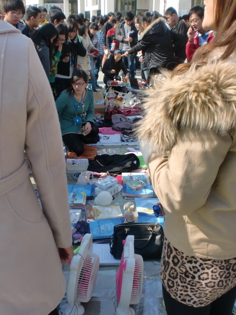 活动现场,同学们纷纷拿来自己暂时用不上的东西出售,书籍、日用品、二手电风扇、衣物等琳琅满目。吸引了不少买家前来捧场,摊位过道间挤满了前来“淘宝”的淘客。