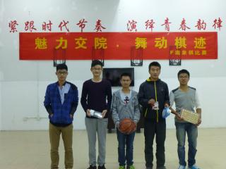 比赛中,大家沉着应战,见招拆招、你来我挡在无声的棋盘战场上进行激烈拼杀。经过五轮比赛角逐,最终来自F南215室的渠悬同学冲出重围,勇夺桂冠;来自F南207室的唐淼同学屈居第二;来自F南413室的曹兴鑫同学获得第三名,来自F南117室的时永成同学获得第四名。