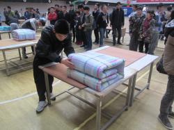 为了提高宿舍内务水平,检验军训成果,同时为了促进学生们之间的交流,丰富同学们的校园文化生活,学工处于11月26日下午2:00在行健馆组织了叠军被比赛,本次活动共有42名学生参加。