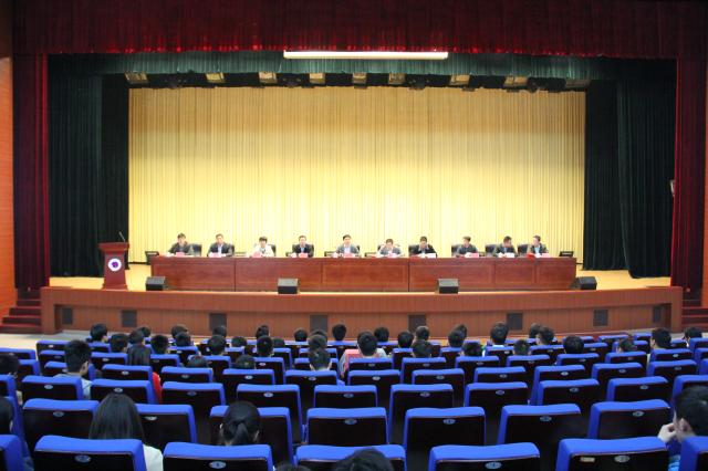 4月16日下午,学院2014-2015学年第一学期文明班级创建活动表彰大会在图书馆报告厅隆重举行。学生工作处王道峰处长、团委季仕锋书记,各二级院(系)党总支负责人以及13级、14级学生干部代表参加了此次会议。