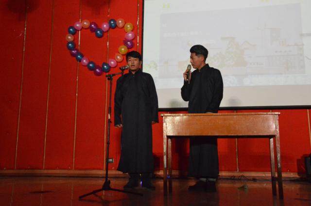 随着背景音乐的响起,晚会在一场由组织部带来的人影戏《光阴的故事》中拉开了帷幕,在光与影的交织下,演出牵动着每一颗观众的心。随后,四位青春洋溢的主持人饱含热情的为晚会讲述了一段精彩的开场白,并介绍了到场的各位领导与嘉宾。伴随热烈的掌声,各部门悉心准备的节目轮番登场:采购部的歌曲《一念之间》和相声、文秘部的小品《安全演习》、学习部的诗朗诵《心灵阳光》、文艺部的手语操和歌舞串烧、外联部的小品《太想爱你》,以及网信部与朋辈心理工作站联合出品的心理剧《从心飞翔》。穿插在其中的互动环节,现场观众也都踊跃参与,全场轰动,气氛几度爆棚。