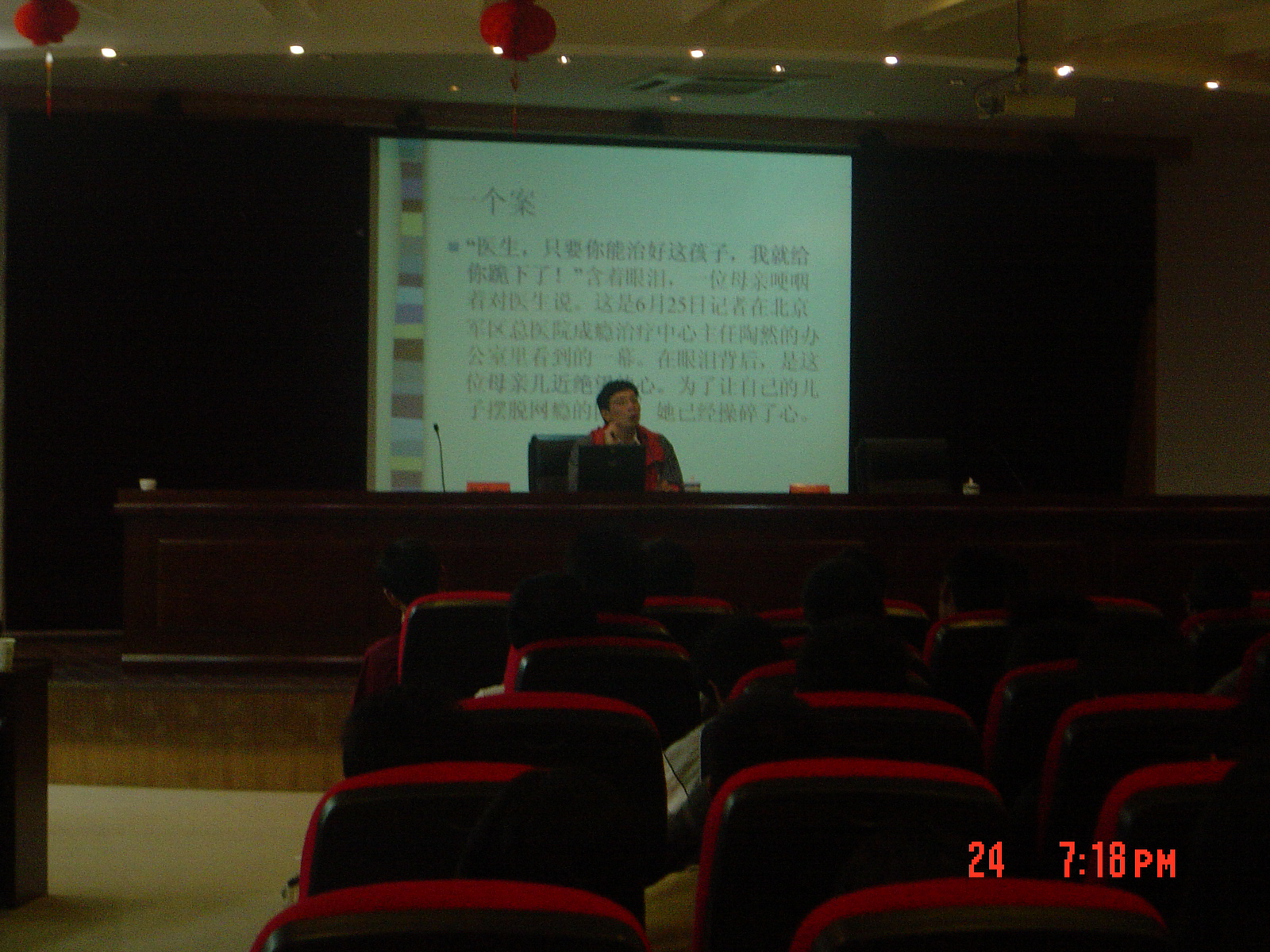 郑爱明副教授以幽默生动的语言就网络对于大学生心理需求的满足、网络成瘾的界定、网络成瘾的危害和如何对于网络沉迷进行干预等方面进行了讲解。讲座结束后,郑爱明副教授与同学们展开了交流,并对同学们提出的问题一一做出回答。