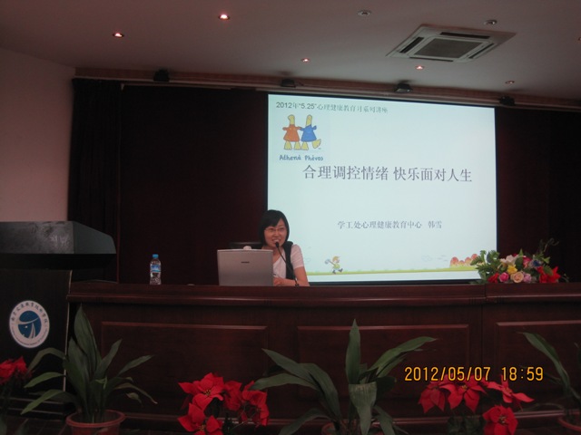 5月7日晚七点,在同学们热烈的掌声中,我院2012年心理健康教育月第一场专题讲座在明德楼报告厅成功举行。讲座由国家二级心理咨询师,心理健康教育中心专职教师韩雪老师主讲,学院近三百名学生参加了本次专题讲座。