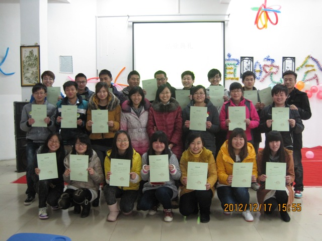 本期朋辈心理咨询班共有学员27名,在从今年4月11日开班至今8个月的培训中,学员们先后完成了心理咨询规范、变态心理学、心理健康的评估、心理咨询基本技术、危机干预等34学时的专业技能培训、32学时的实习和4学时的案例督导,经考核,有25名学员合格并准予结业。获准结业的学员将被聘为2013年度朋辈心理咨询员及心理咨询室接待员,负责朋辈心理咨询及来访者接待、心理测验、心理咨询室的日常管理等工作。