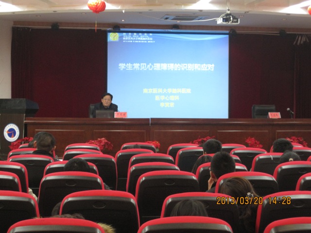 “320”寓意“政府、学校、家庭三方面关爱大学生群体”。3月20日下午14:00,南京脑科医院心理科李箕君主任应邀在学院明德楼报告厅开设了题为《学生常见心理障碍的识别与应对》的专题讲座,班主任、辅导员及班级心理委员到场聆听。李主任由从医20年的经验出发,根据心理问题的诊断依据重点讲诉了抑郁症、焦虑症等心理问题的预防、识别和处理。