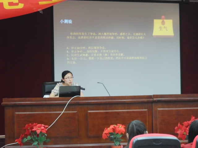 5月6日至28日,学校专兼职心理教师陆续开展了四场“正能量”专题讲座,主题分别为《运用正能量,打造超级意志力》、《控制思维,激发内心正能量》、《提升吸引力,获得人际正能量》、《对抗负面情绪,获得快乐正能量》。讲座通过实验案例和现场训练方法讲解,指导学生在身陷困惑、争执和消极能量之中时,尝试解脱或改变破坏性的能量,让积极的思维、情绪、人际和行为引导自己,从焦虑痛苦纠结的泥沼中解脱。四场讲座听众超千人,扩大了心理健康知识的宣传与普及面。