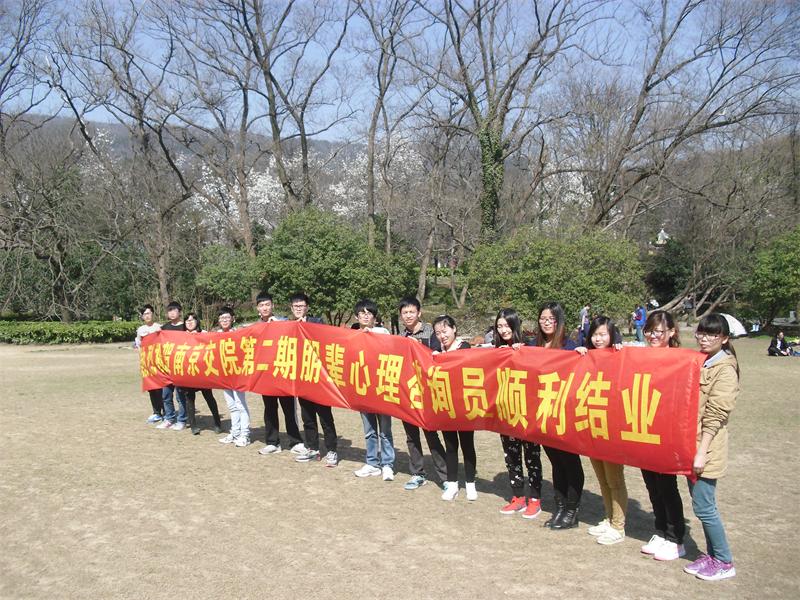 3月15日,我校第二期朋辈心理咨询培训班结业典礼在中山陵风景区顺利举行。学生工作处心理健康教育中心张丽君老师、韩雪老师以及14名学员参加了本次活动。