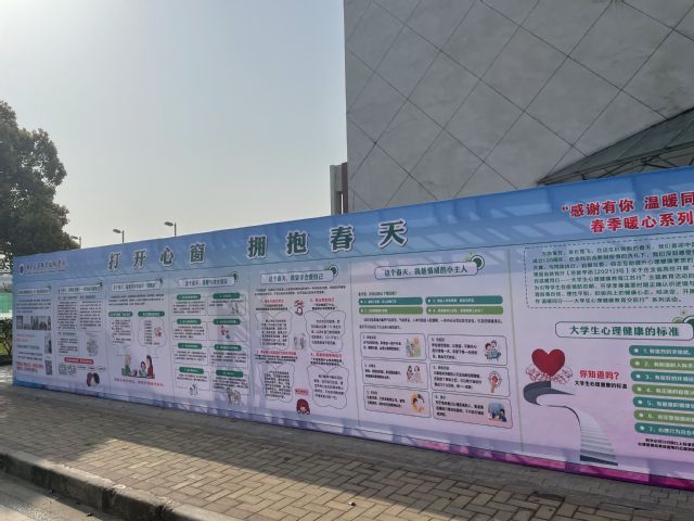春季是心理健康问题高发季,为营造阳光健康、积极向上的校园文化氛围,助力学生识别、应对生活与学习中的各类心理困扰,给同学们带来心灵关怀。3月31日下午,南京交院“感谢有你温暖同行”广场心理咨询活动在行健馆北门举行。本次活动邀请到来自中国药科大学、南京工程学院、江苏海事学院和江苏经贸职业技术学院的四位专职心理咨询老师,为我校同学解答心理困惑,缓解心理压力。
