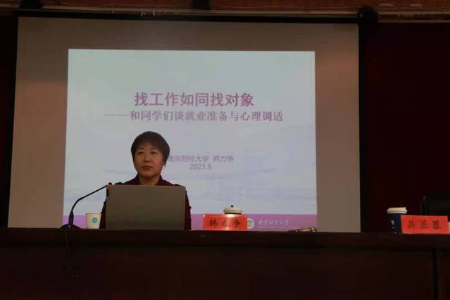 本次讲座邀请南京财经大学党委研究生工作部部长韩力争教授主讲,讲座主题为“大学生就业心理”。韩教授从人生、爱情、工作三大方向总结人生最重要的三个阶段:求学、求职和求偶,由浅入深地讲述了大学生常见的就业心理问题与表现,启发并引导同学们思考就业准备和就业心理调试,幽默风趣的讲座风格受到同学们的喜爱与欢迎,现场多次互动,同学们受益匪浅。