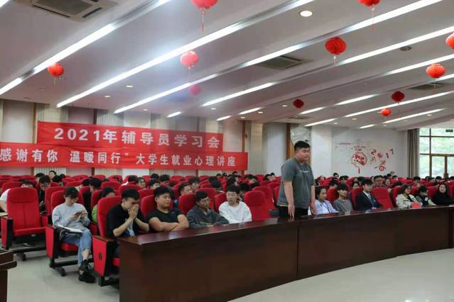 5月20日下午,2021年南京交院辅导员理论学习会暨“感谢有你温暖同行”大学生就业心理讲座在明德楼报告厅顺利开展。学工处及心理健康教育中心相关领导、老师,全体政治辅导员,2021届毕业生代表,班级心理委员,朋辈心理咨询员以及在校生代表参加了讲座。