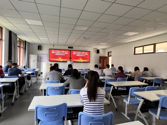 会上,所有党员教师观看了4月3日在北京召开的学习贯彻习近平新时代中国特色社会主义思想主题教育工作会议视频,深刻领悟了中共中央总书记习近平在会上的重要讲话精神。