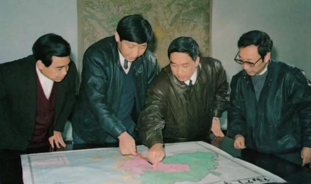1991年12月,习近平与同事讨论福州市战略规划设想。(图源:《习近平在福州》)