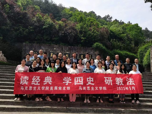 为深入开展学习贯彻习近平新时代中国特色社会主义思想主题教育,提高党员以史为鉴、学思践悟的能力,突出教师深学细研、三带三入,5月20-21日,马克思主义学院组织全体教师、党员赴皖南事变烈士陵园、新四军军部旧址等地开展了思政课教师实践考察暨“读经典 学四史 研教法”主题党日活动。