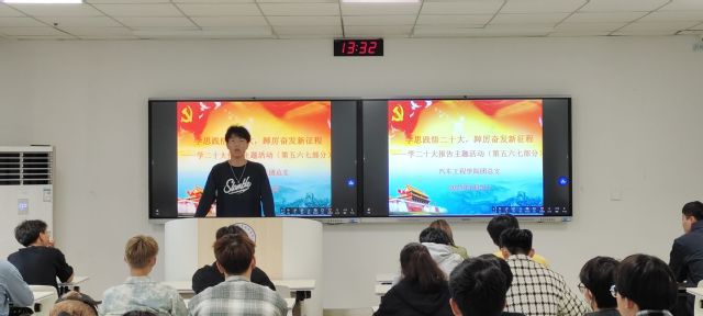 为推进青年学生主题教育,引领青年学子深入学习党的二十大精神,6月5日下午,汽车工程学院团总支在致远楼416组织开展了第五次“学思践悟二十大、踔厉奋发新征程”学二十大报告主题活动。在校班级班长、团支书共计60余人参加会议。会议由团总支书记王雪琴主持。