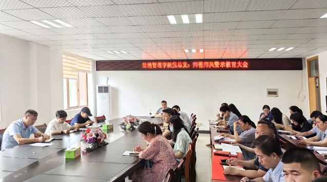 为做好师德师风教育工作,6月28日下午,学院党总支于齐贤楼420会议室召开师德师风警示教育大会,全体教师参会,党总支书记王艳梅主持会议。