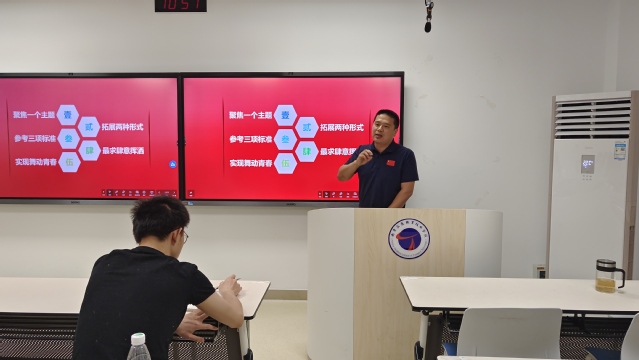 为推动学习贯彻习近平新时代中国特色社会主义思想主题教育走深走实,全面贯彻党的二十大精神和党的青年工作重要论述,聚焦立德树人根本任务,做好班主任队伍建设,提升班团干部实践能力,积极响应校团委暑期社会实践工作要求,我院于6月30号上午在齐贤楼415室组织开展了“高扬党旗红 绽放青春绿 培植工匠蓝”实践能力提升主题培训活动。学院党总支副书记葛明亮,名班主任工作室负责人周寸飞,2023年学院暑期社会实践集体项目指导教师陈鑫明、杨涛,2023年暑期社会实践集体项目队员参加培训,本次培训分别由周寸飞、葛明亮老师主讲。
