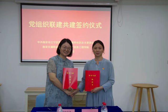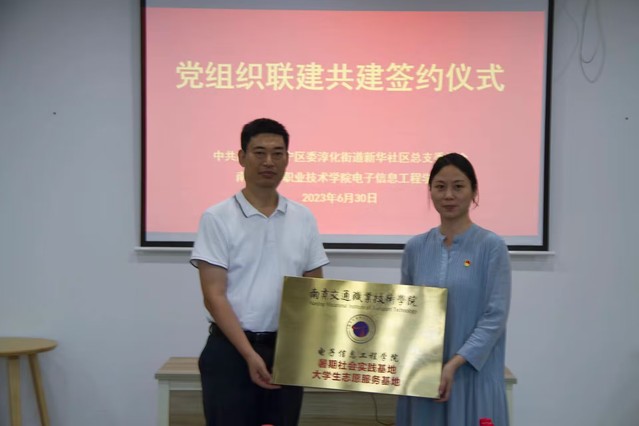 为深入学习贯彻党的二十大精神,落实片区“大党委”工作制度,6月30日,电子信息工程学院党总支关工委与淳化街道新华社区党总支举行结对共建签约挂牌仪式。电子信息工程学院党总支书记杨金刚、副书记张丽君、团支部书记徐敏、部分辅导员、学生代表与新华社区党总支书记孙卉及社区两委班子成员参加此次活动。