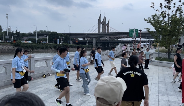 在油罐公园,这里原是大运河边存放石油的地方,通过改造,如今已经成为居民的休闲娱乐的场地,是大运河边的一道靓丽风景。实践队员们深入到当地群众中,进行问卷调查,还同居民一起跳广场舞,充分感受到当地工业遗产改造给当地居民带来的益处。
