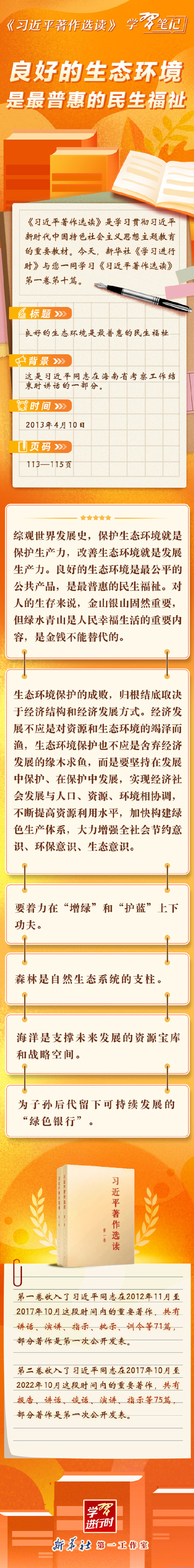 《习近平著作选读》学习笔记:良好的生态环境是最普惠的民生福祉