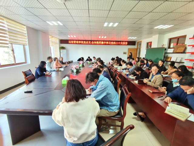 为深入学习党的二十大报告,紧跟党中央步伐。10月19日,运输管理学院党总支于齐贤楼420会议室,召开全体教师学习党的二十大报告会议,党总支书记王艳梅主持会议。