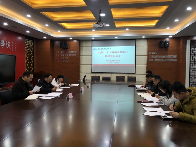 2022年12月8日下午,学院党委巡学旁听第四工作组对体育部直属党支部开展2022年党的二十大精神专题学习巡学旁听工作。学院谢剑康副院长、组织部朱芸副部长、纪委冯银东、体育部党政领导、支委委员、部分内设机构负责人参加了会议,会议由体育部直属党支部书记史立峰主持。